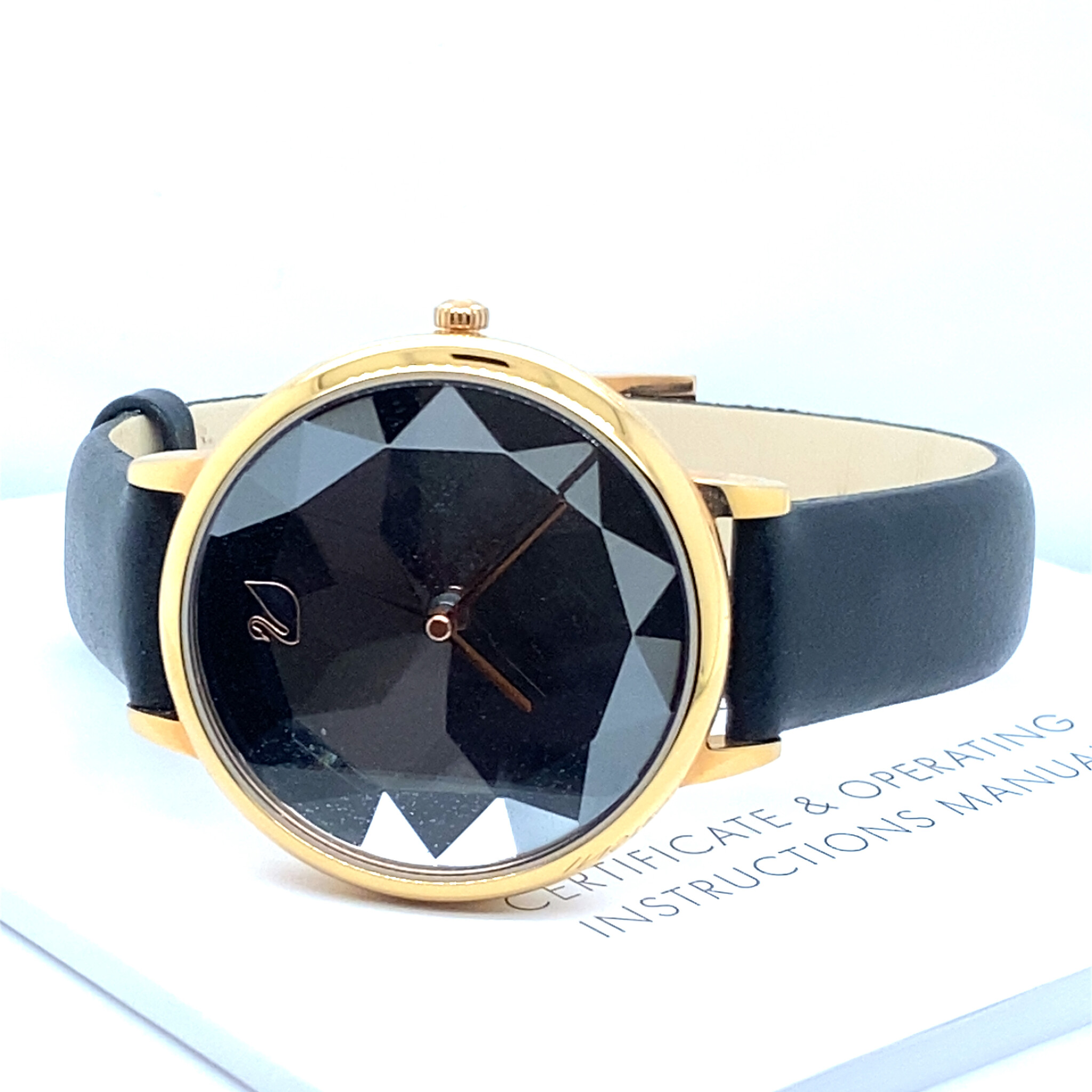 swarovski 5416003 ladies crystal lake gold plated black watch